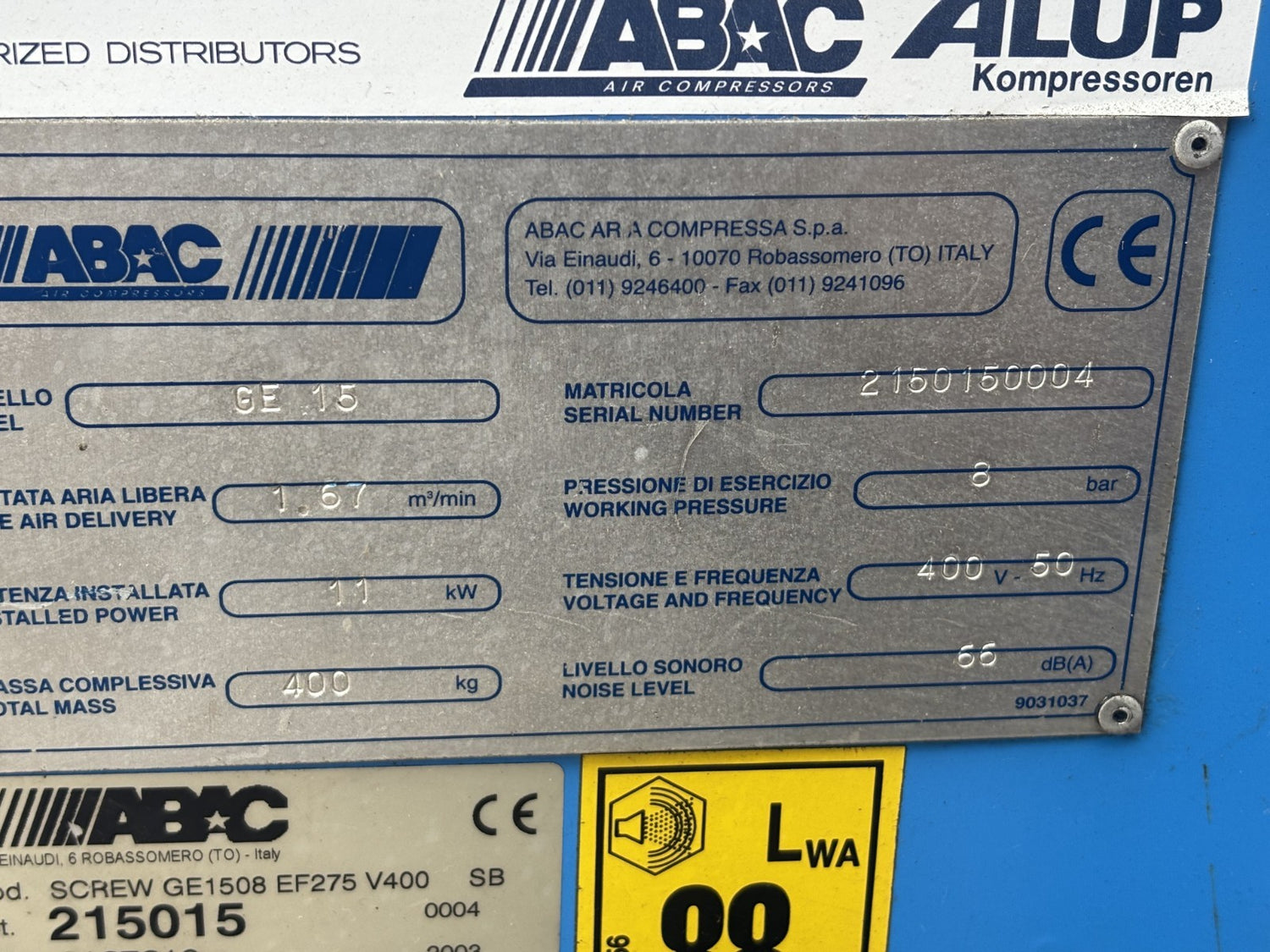 ABAC Genesis 1508 GE15 11kW 8 Bar Screw Compressor Mounted Receiver 85 Air Dyer