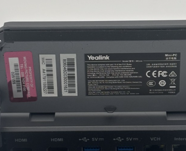 - 1x Yealink MCore Microsoft Teams Video Conferencing Mini-PC 8th Gen Quad Core i5