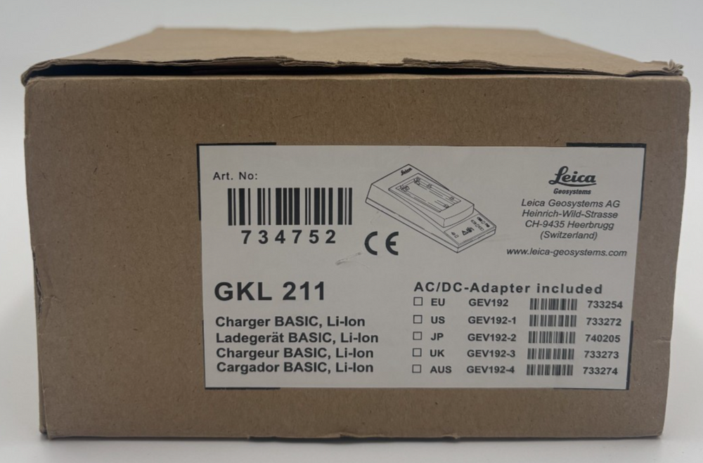 The Leica GKL211 Battery Charger is a simple and efficient charging solution for Leica Li-Ion batteries compatible with the charger, including the GEB211, GEB212, and GEB221 batteries. It offers quick and reliable charging, ensuring your Leica equipment stays powered up and ready for action.