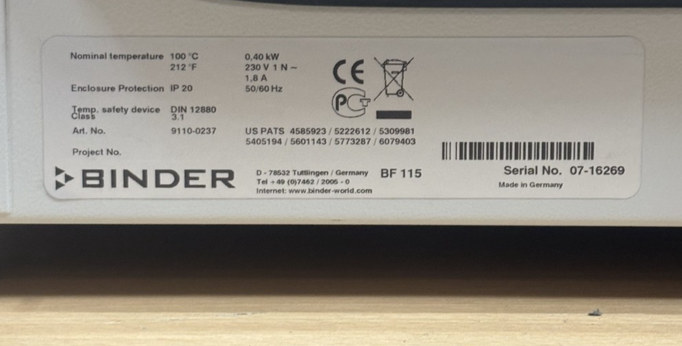 Binder BF115 Forced Convection Standard Incubator Laboratory Oven 91100237 ist auf Lager und wird versandt, sobald es wieder verfügbar ist