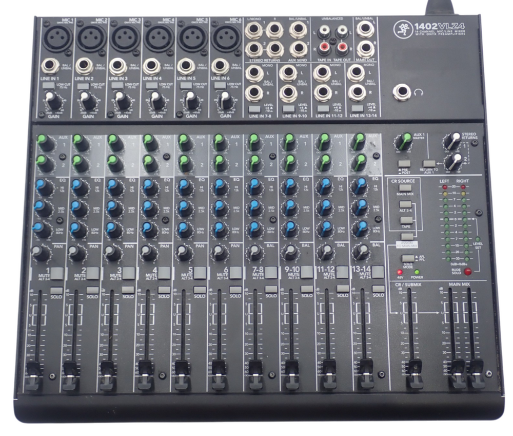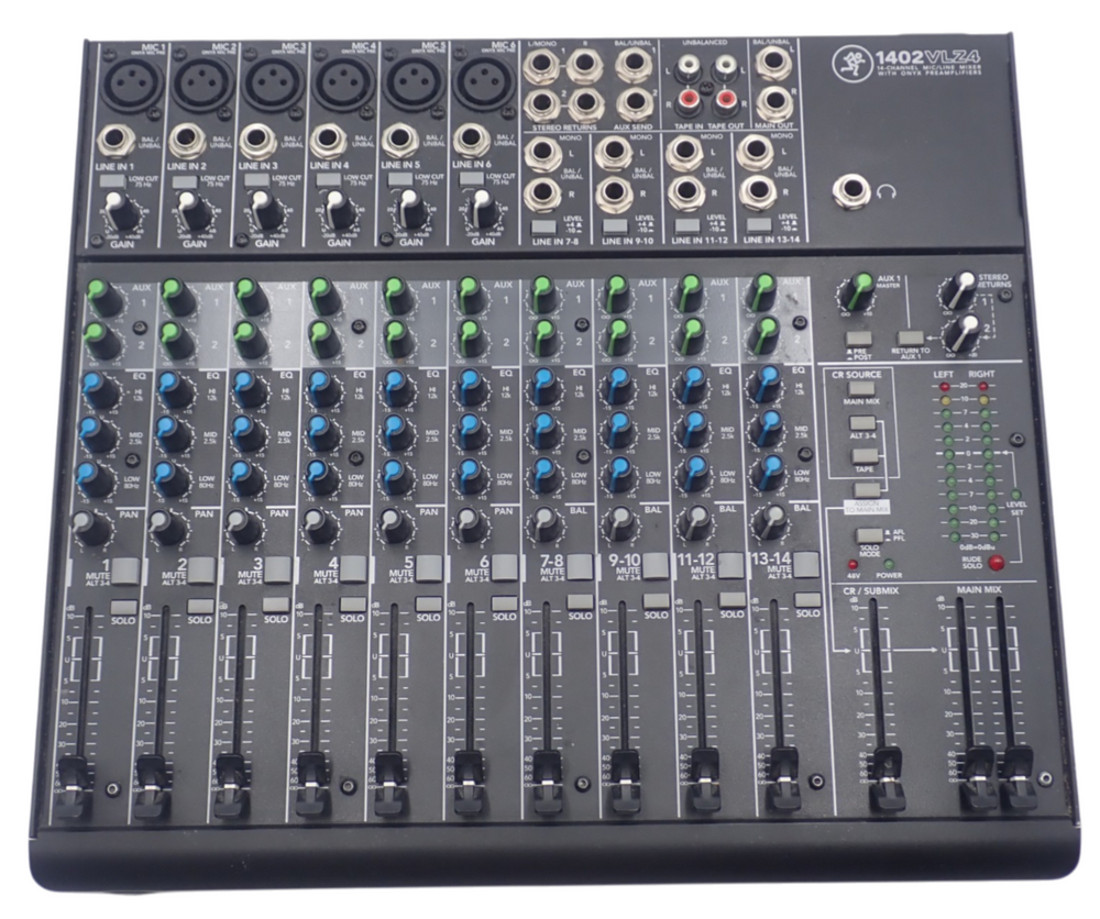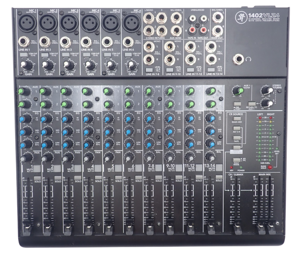 1 x Mackie 1402VLZ4 14-Channel Line 6x Mic 2x Aux Send Inputs Compact Analog Mixer