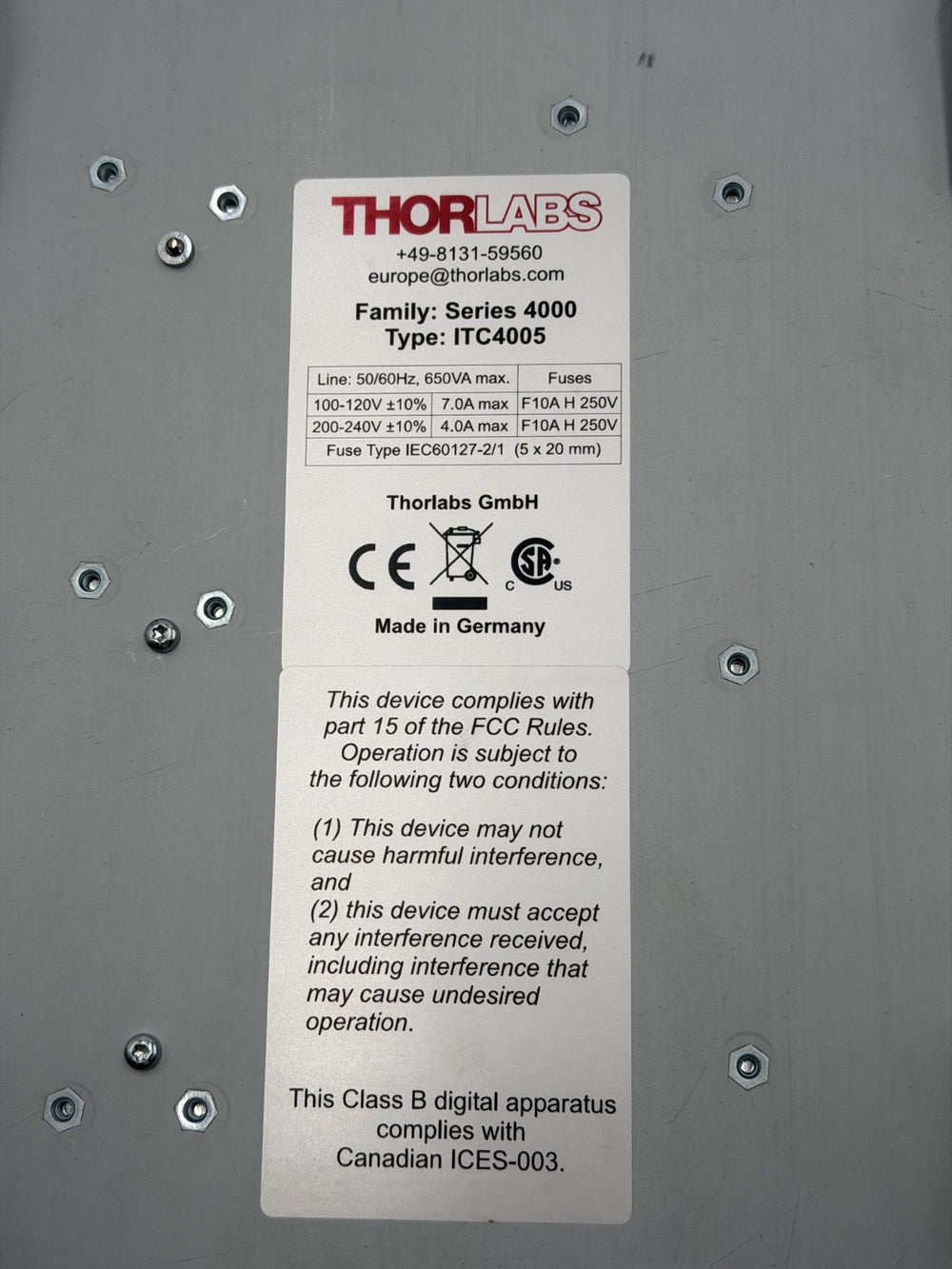 1 x ThorLabs ITC4005 Manual